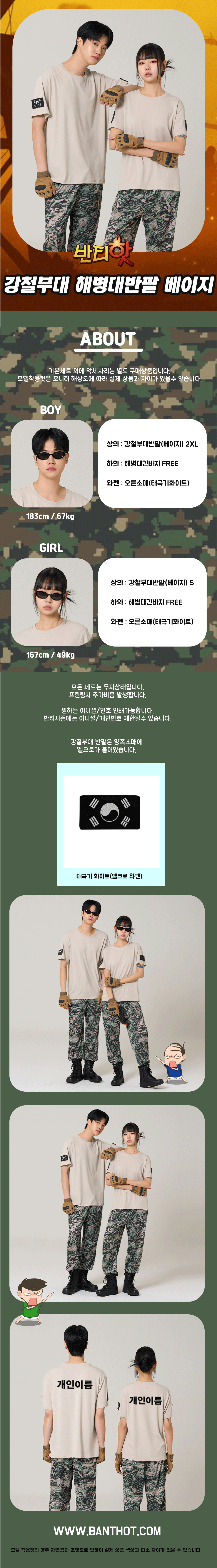강철부대 해병대 반팔 베이지 반티(상의기준)